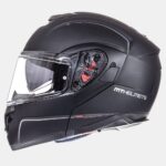 Atom SV je flip up kaciga sa vanjskim prozirnim i unutarnjim sunčanim vizirom, izrađena je od visoko otporne termo plastike sa metalnom kopčom za brzo zatvaranje.