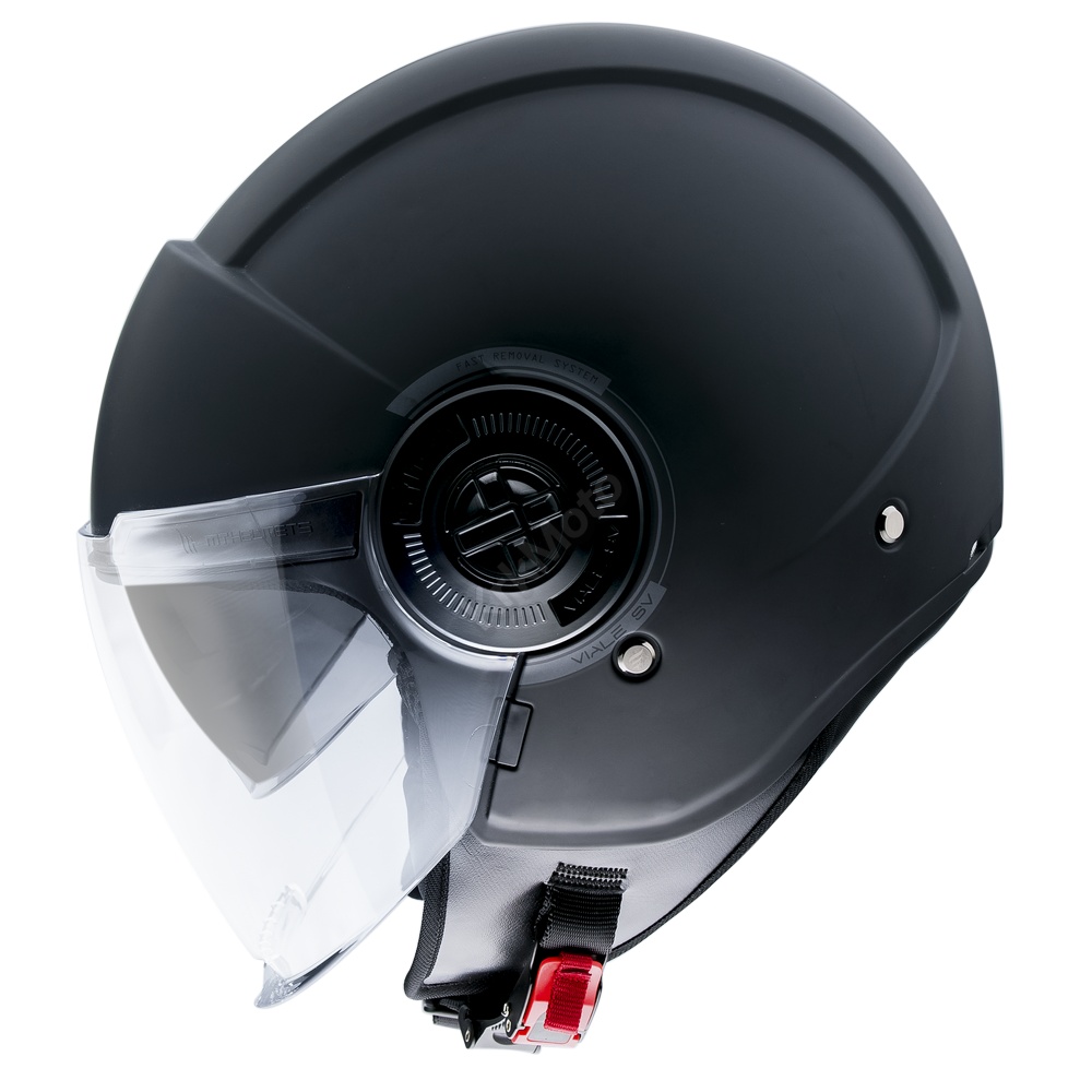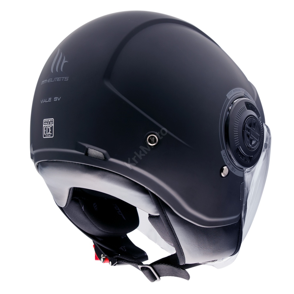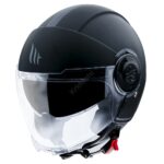 Jednostavna jet kaciga s dva vizira za gradsku upotrebu.Izrađena od visokotporne termoplastike.Unutrašnjost skidajuća i periva, izrađena od antialergijskog materijala.